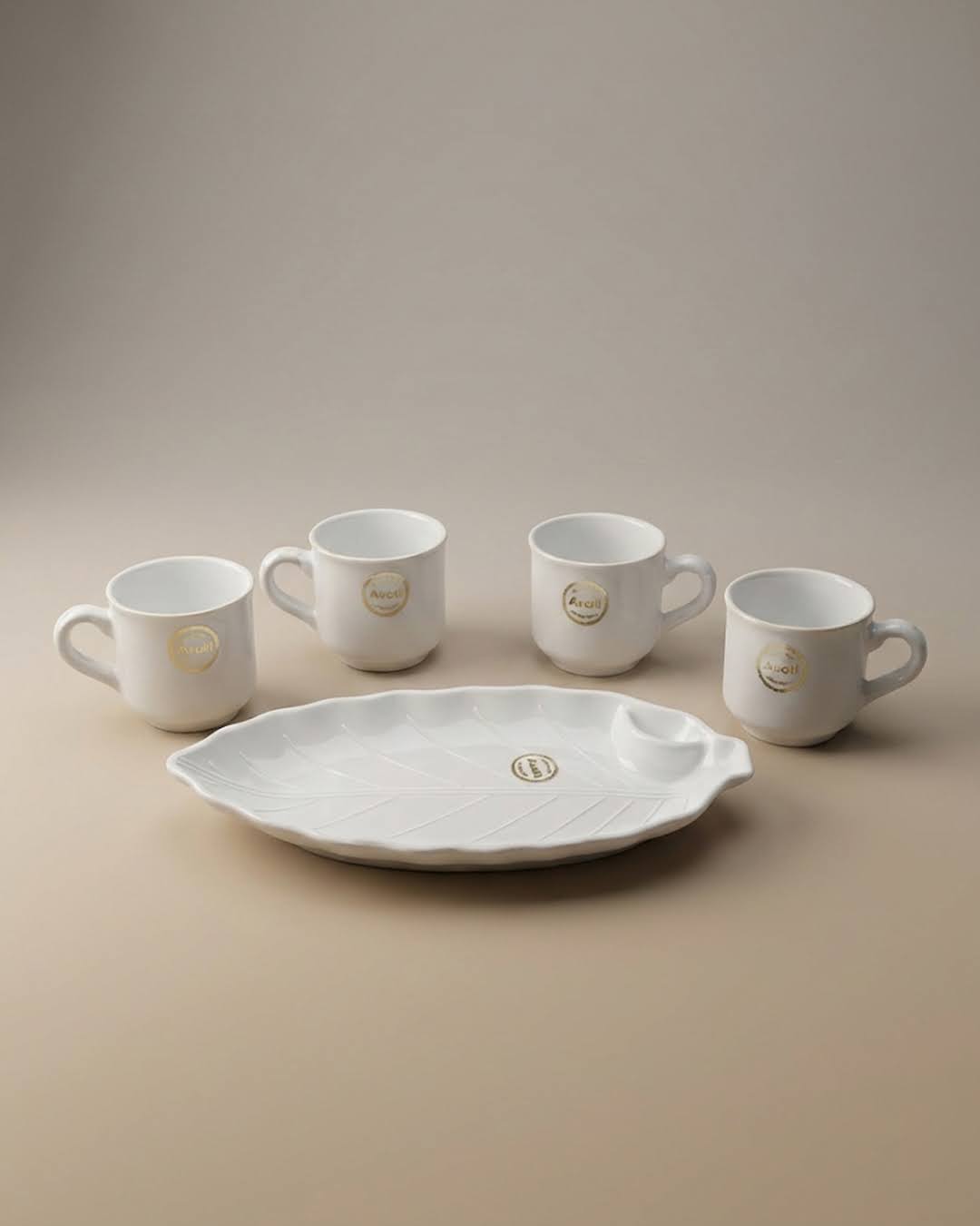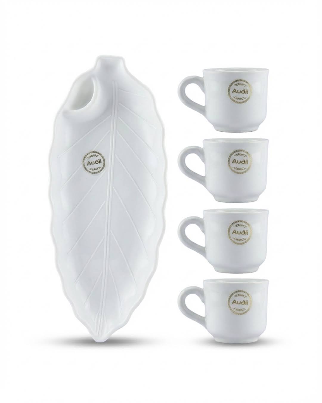 & Free ShippingA ceramic cup set paired with a unique leaf-shaped tray.