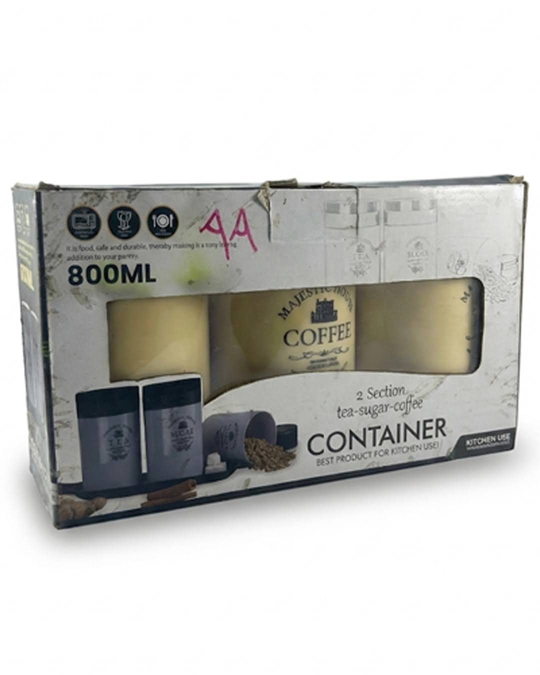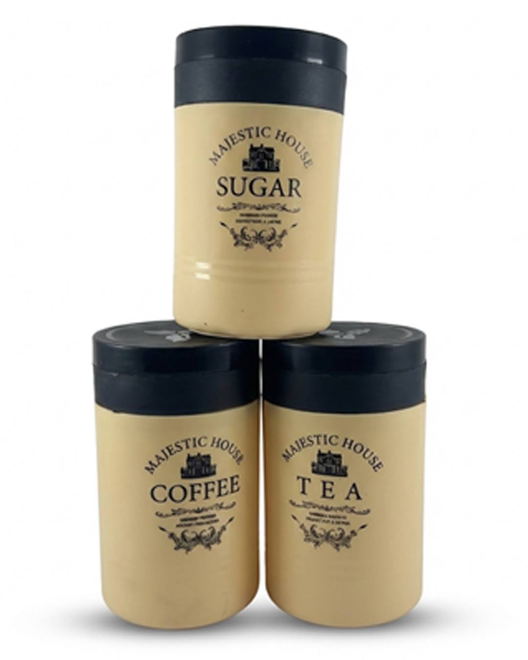 & Free ShippingA storage jar set labeled for sugar, coffee, and tea.