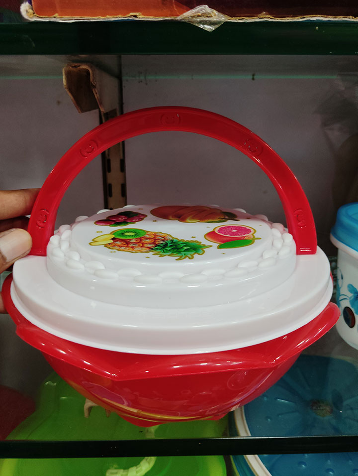 A beautifully crafted plastic box with double handles, perfect for gifting sweets, dry fruits, or small items. Its strong build and elegant design make it ideal for festive and special occasions.
