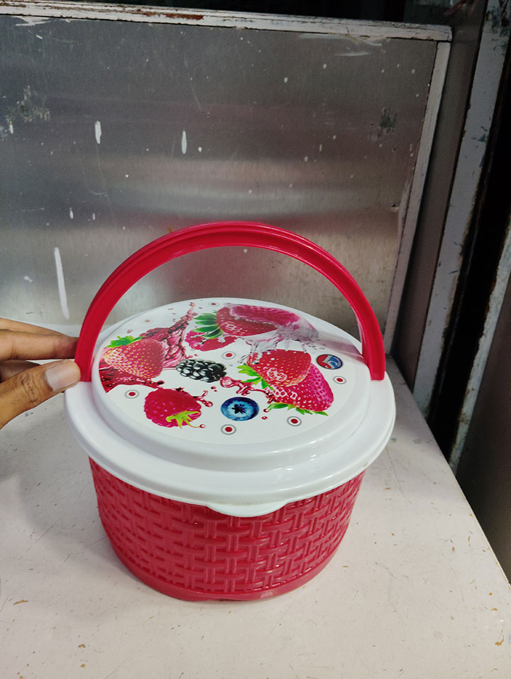 A stylish double-handle plastic box crafted for gifting and special occasions. Perfect for presenting sweets, snacks, or dry fruits at functions. Its elegant design and sturdy double handles make it both eye-catching and easy to carry — a perfect blend of beauty and practicality.