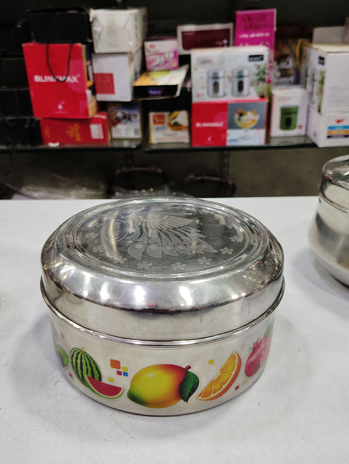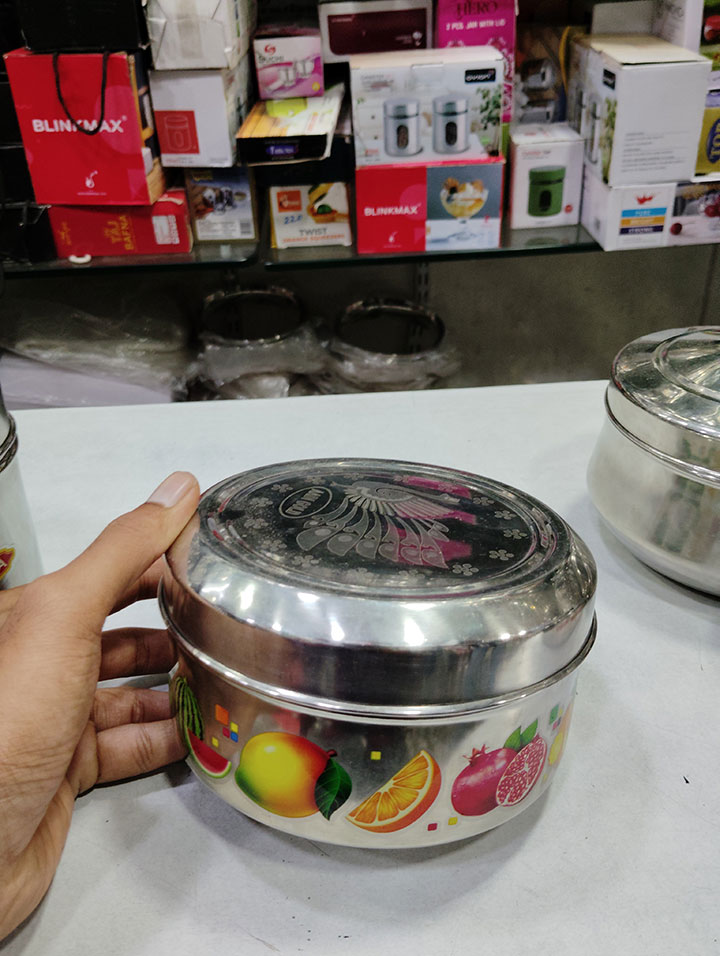 & Free ShippingA design-printed stainless steel box with an elegant and modern look. Strong, shiny, and easy to clean — perfect for storing sweets or snacks and ideal as a return gift for weddings, parties, and festive occasions.
