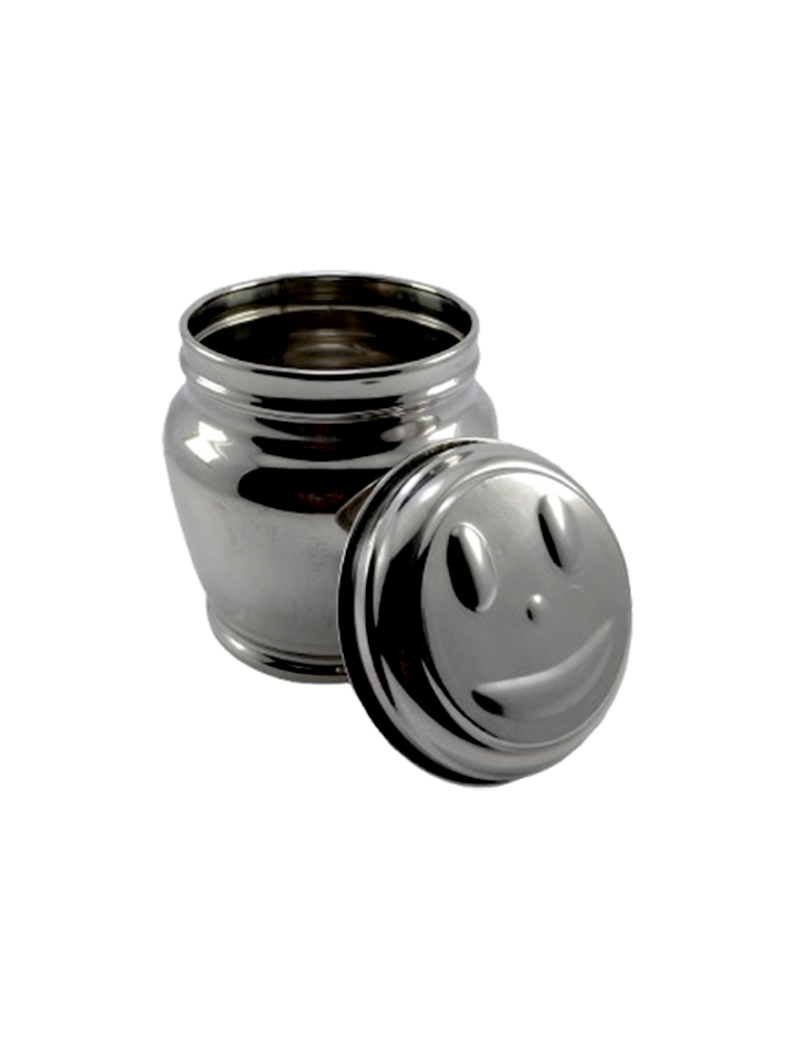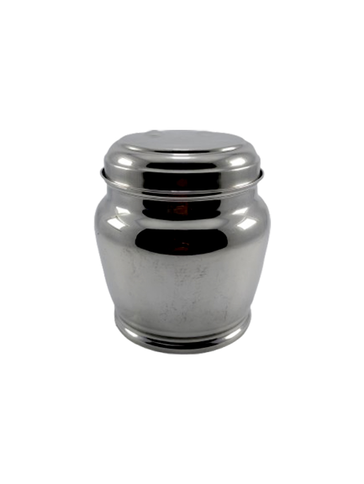 & Free ShippingA compact stainless steel container with a decorative embossed lid.