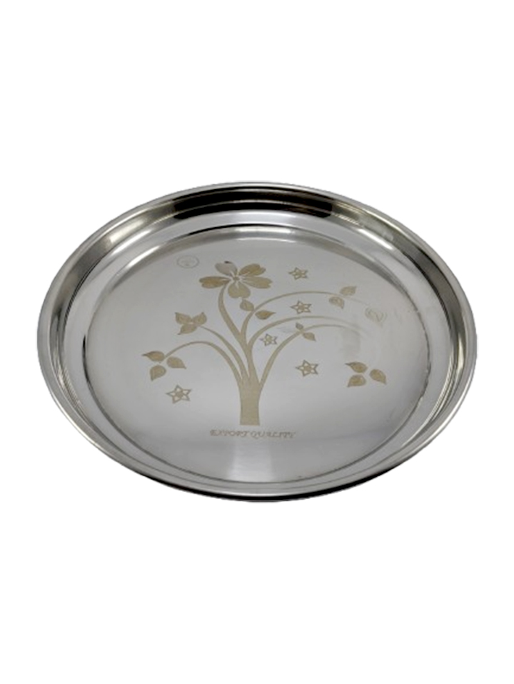 & Free ShippingA stainless steel plate featuring a star-style floral design.