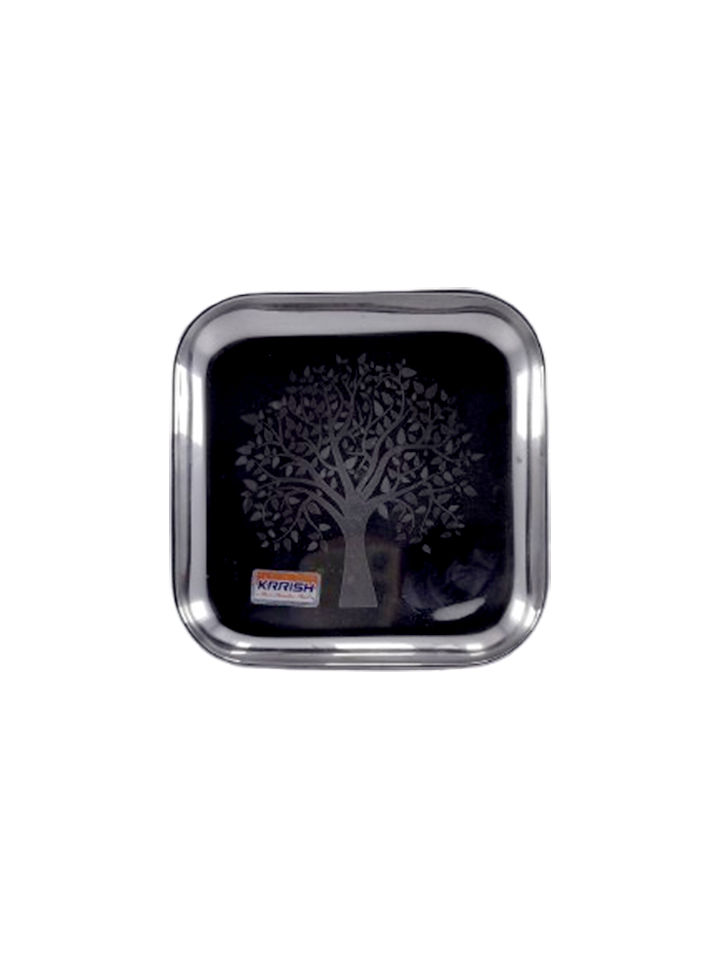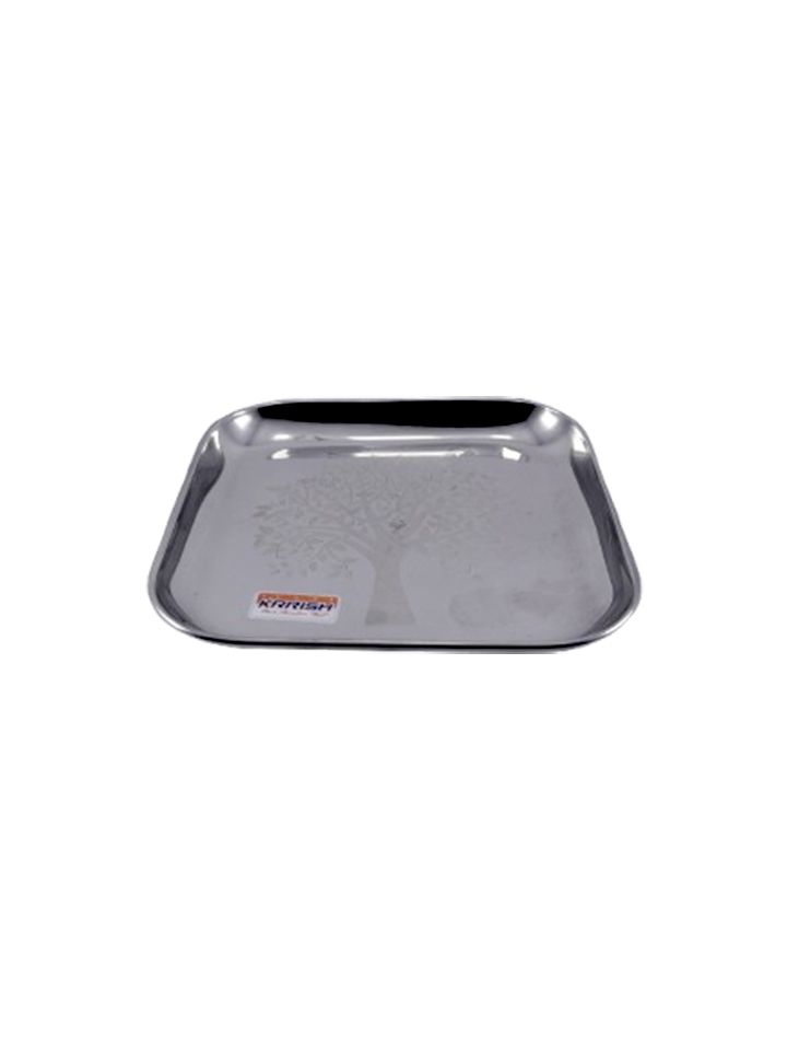 & Free ShippingA compact square stainless steel tray with decorative engraving.