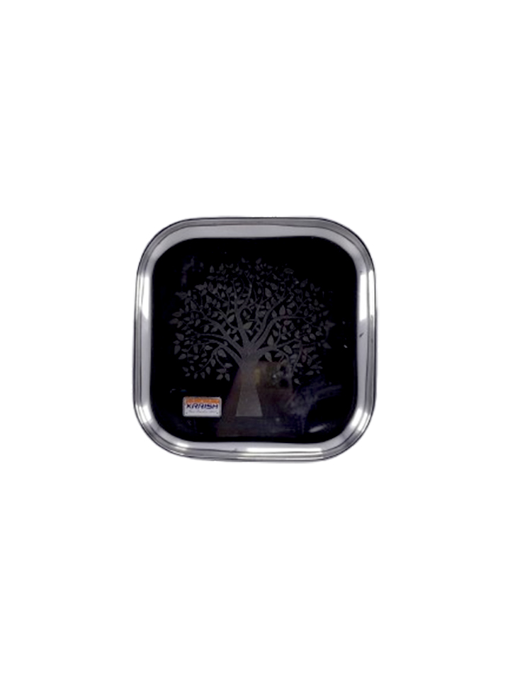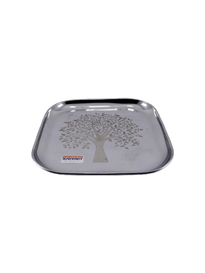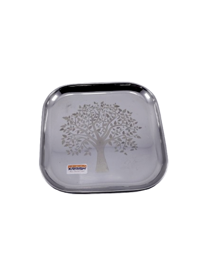 & Free ShippingA compact square stainless steel tray with decorative engraving.