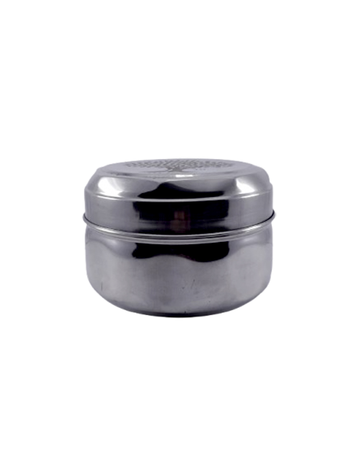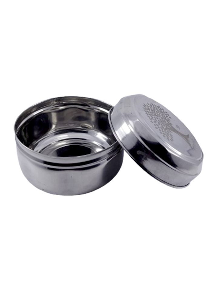 & Free ShippingA round stainless steel box with a decorative tree-engraved lid.