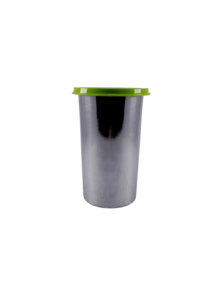 & Free ShippingA stainless steel tumbler with a fitted green lid.
